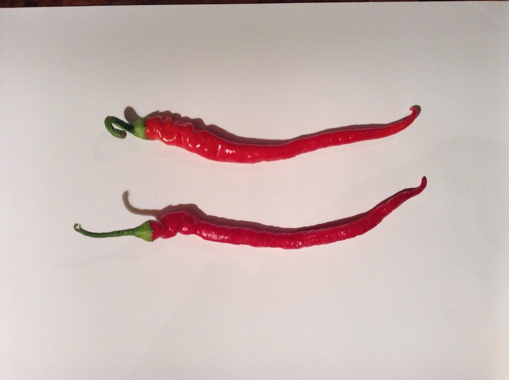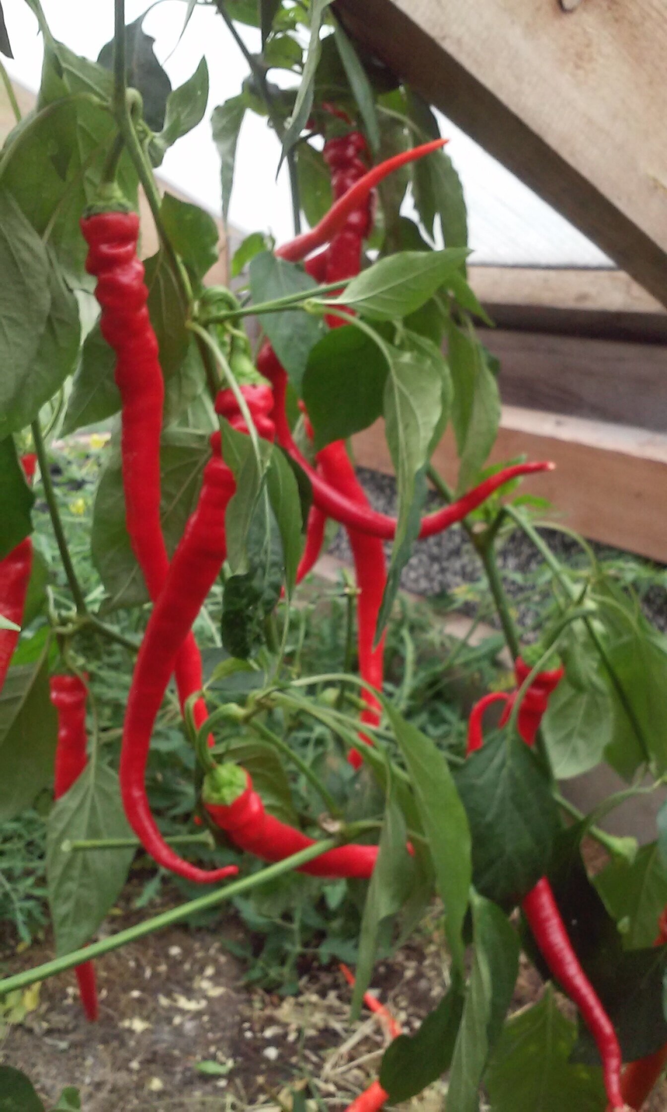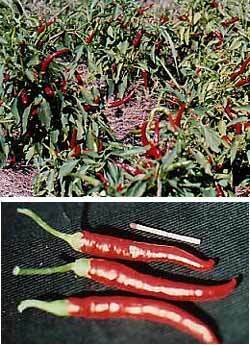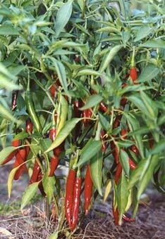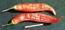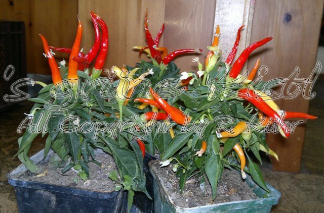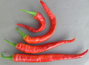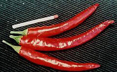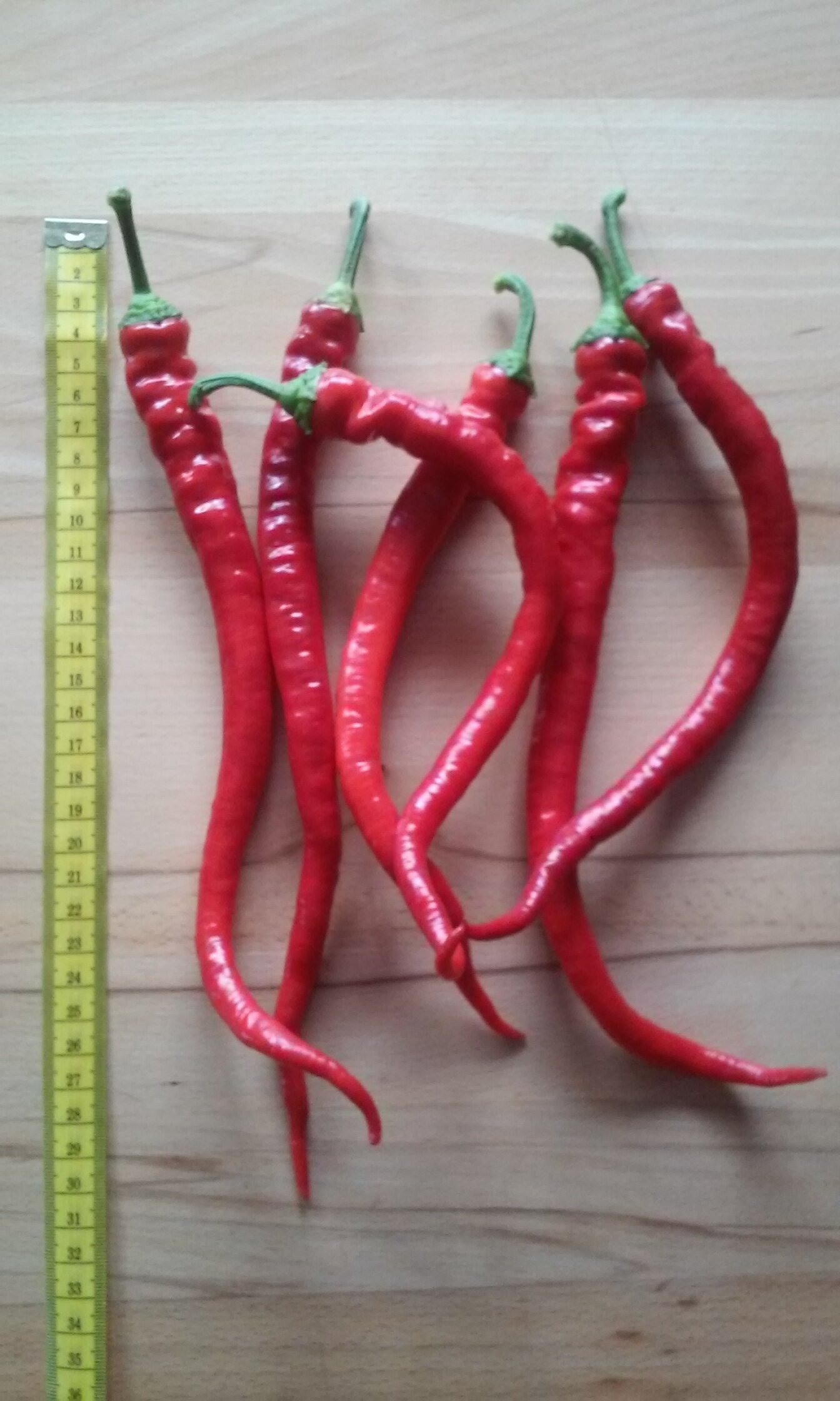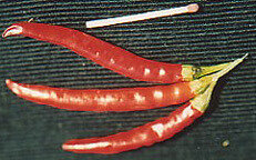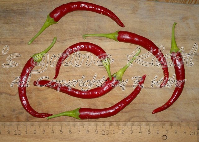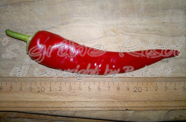 8cm lange, gerade feuerrote Frücxhte. Scharf. Pflanze ist kräfig verzweigt.