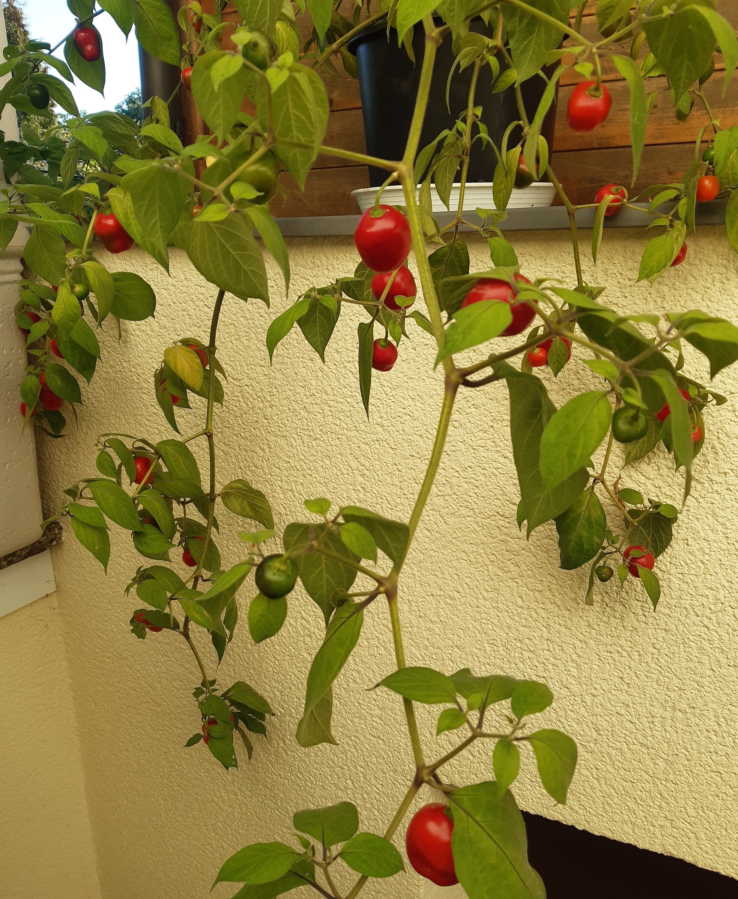 Diese Chili ist wahrlich ein Überlebenskünstler. Sie kommt selbst im Winter mit wenig Licht zurecht und kann auch prima als Zimmerpflanze gehalten werden. Die Pflanze ist ein Massenträger - sie hat sowohl indoor als auch outdoor Unmengen an Früchten. Schärfe 7 auf einer Skala von 1-10.