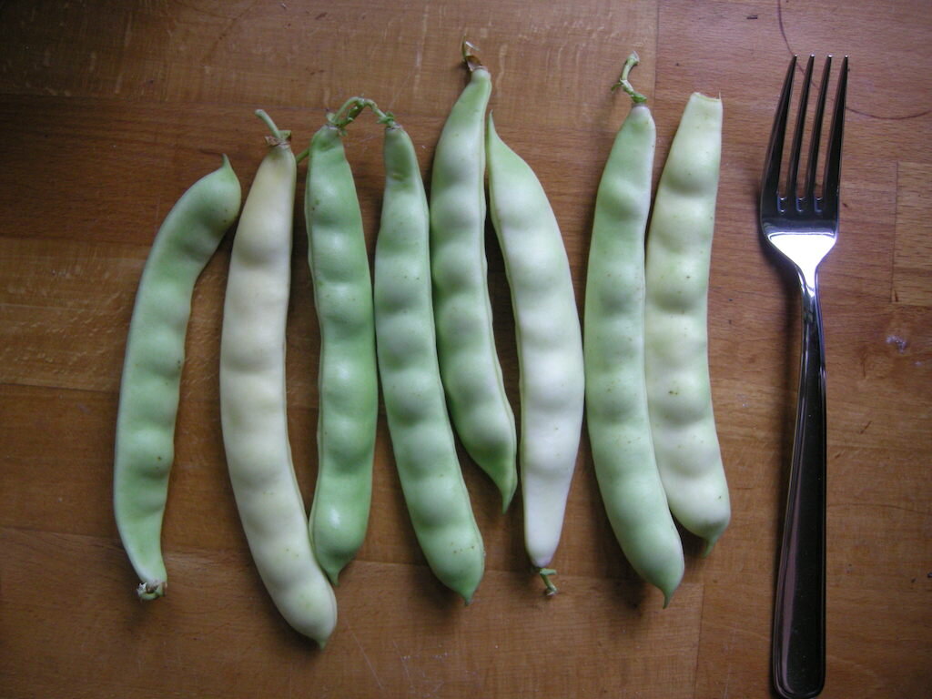 die Pflanze wächst sehr hoch, ist gesund und ertragreich, die Fisolen werden sehr breit (2 bis 3 cm) und ca. 15 cm lang und können auch relativ dick noch gegessen werden; nicht fädig; unsere absolute Lieblingsbohne; nur wenig Saatgut vorhanden; seit 1999 von einem AN-Mitglied